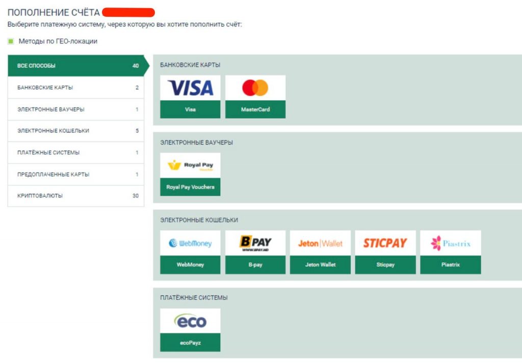 - Электронные кошельки: Skrill, Neteller, Piastrix, MuchBetter, Jeton, AirTM.